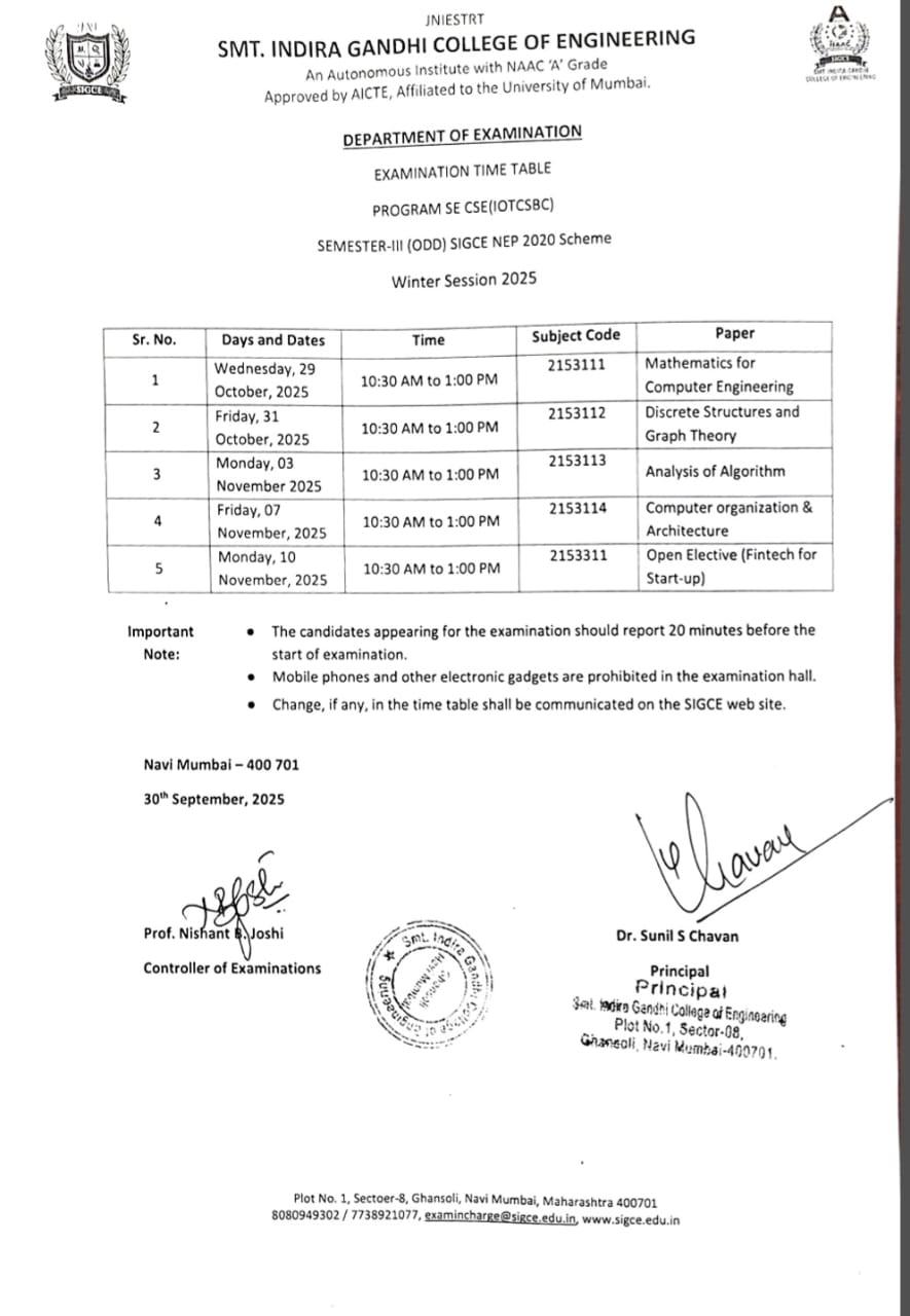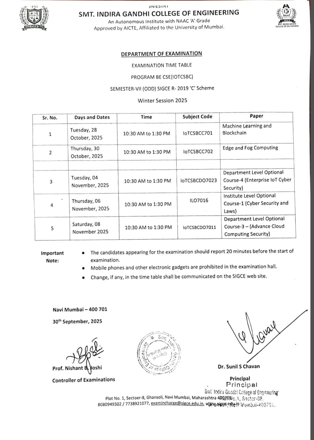 - For Winter exam-Nov./Dec. for online exam forms for Sem. I, II, VII & VIII to be submit in the month of September/October for every academic year.