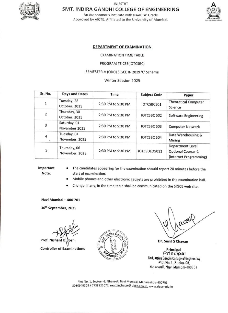 The Exam Section is responsible for conduction of all University and College exams of Nov./Dec. and May/June for every academic years as per guidelines of University of Mumbai and also prepare the results of exam for Sem. III, IV, V & VI. Also conducts reverification and providing the photocopy of exam answer papers of students of college exam for Sem. III, IV, V & VI as per guidelines of University of Mumbai. Total liaison with University of Mumbai. The collection of online exam forms acknowledgments of all the students for Sem. I, II, VII & VIII, scrutinizing and approved as per login ID provide by the University of Mumbai and after that sending the acknowledgements slips to the University along with exam fees and also collection & submission of revaluation & photocopy of Sem. I, II, VII & VIII for first & second half of every year. Display of all branch results as declared by University, display of circulars, notices related to examinations.