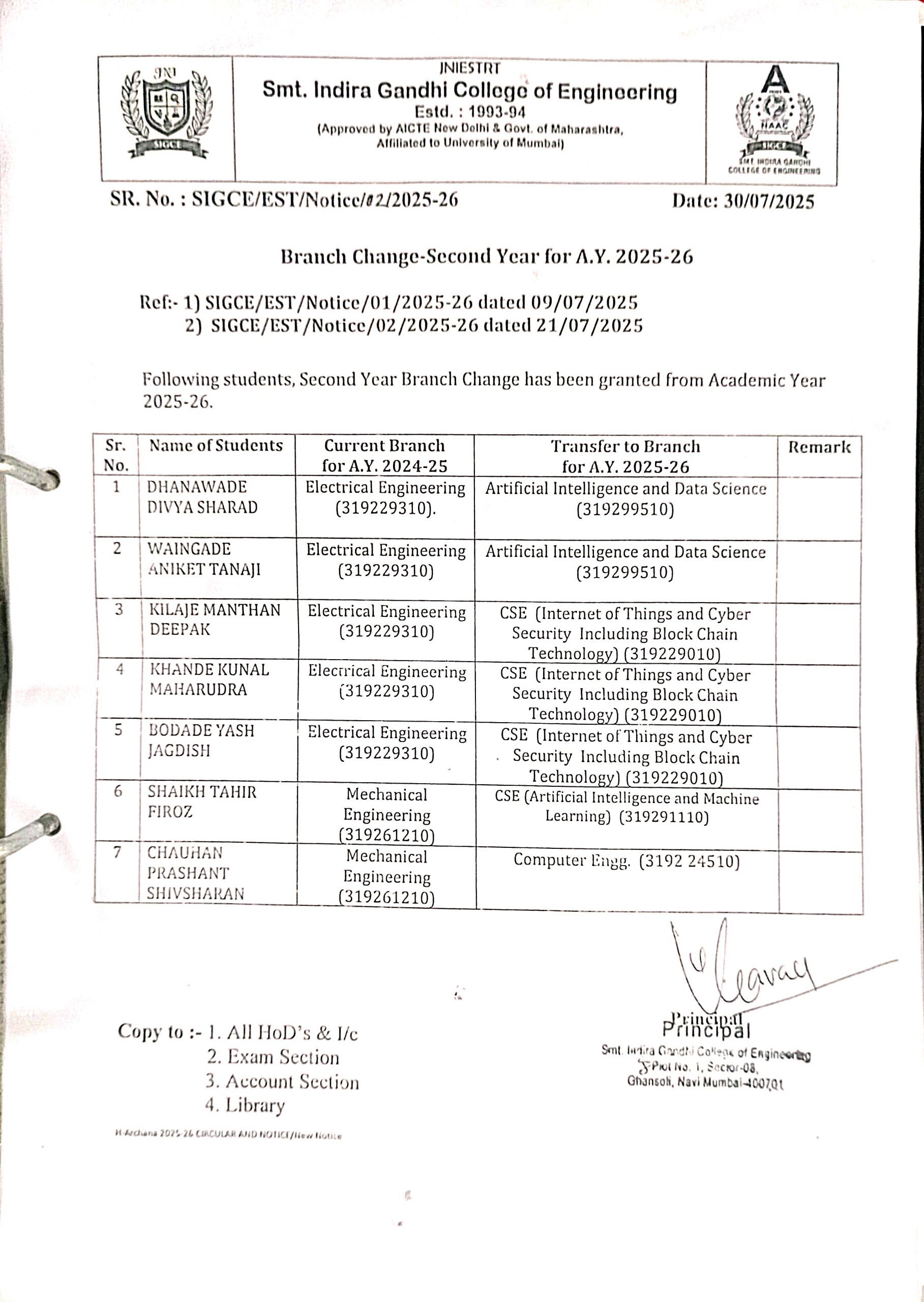 30/07/2025 | Branch Change Second Year Notice for AY.2025-26 | Click Here |